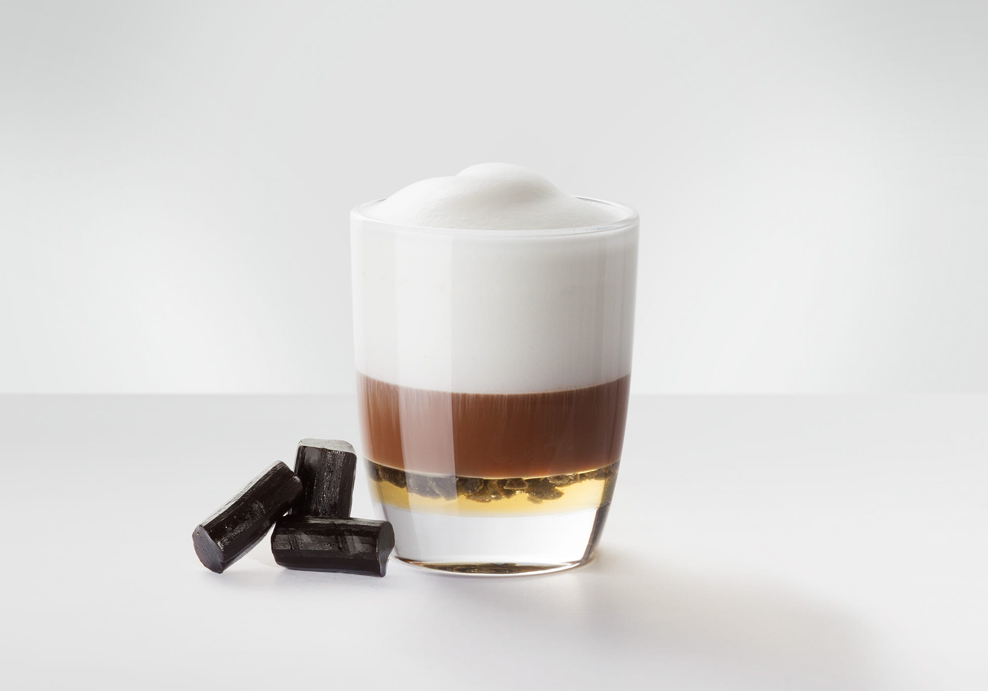 Saupoudrez la mousse de lait d’un peu de réglisse en poudre et mélangez délicatement la spécialité de café avant dégustation.